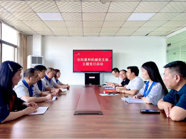 為慶祝中國(guó)共產(chǎn)黨成立102周年,深刻領(lǐng)會(huì)二十大新修訂黨章的理論內(nèi)涵和精神實(shí)質(zhì),加強(qiáng)全體黨員的黨性意識(shí),提高理論素養(yǎng),2023年6月30日下午,安陽(yáng)嘉和機(jī)械有限公司黨支部組織開展“迎七一、強(qiáng)黨性、以黨建引領(lǐng)企業(yè)高質(zhì)量發(fā)展”主題黨日活動(dòng)。該活動(dòng)由嘉和機(jī)械黨支部書記、炬石玄纖科技總經(jīng)理張道林主持,嘉和機(jī)械、炬石玄纖科技董事長(zhǎng)蘇林及嘉和全體黨員參與。